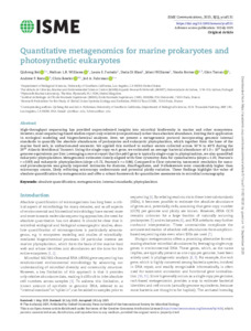 Bei, Q, Williams, NLR, Furtado, LE, Blasi, DD, Williams, J, Brotas, V, Tarran, GA, Rees, AP, Bowler, C and Fuhrman, JA 2025 Quantitative metagenomics for marine prokaryotes and photosynthetic eukaryotes. ISME Communications, 5 (1). 10.1093/ismeco/ycaf131