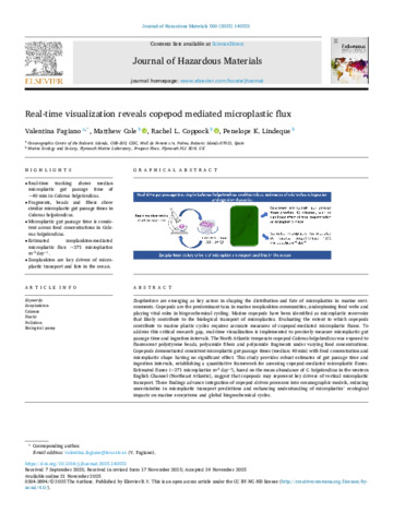 Fagiano, V, Cole, MJ, Coppock, RL and Lindeque, PK 2025 Real-time visualization reveals copepod mediated microplastic flux. Journal of Hazardous Materials, 500. 140551. 10.1016/j.jhazmat.2025.140551