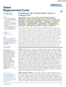Schultz, C, Luo, JY, Brady, DC, Fulweiler, RW, Long, MH, Petrik, CM, Testa, JM, Benway, HM, Burdige, D, Cecchetto, MM, Elegbede, I, Evans, N, Frenzel, A, Gillen, K, Herbert, LC, Hirsh, HK, Lessin, G, Levin, LA, Maiti, K, Malkin, S, Mincks, SL, Nmor, S, Pham, A, Pinckney, J, Rabouille, C, Rahman, S, Rakshit, S, Ray, NE, Sasaki, DK, Siedlecki, SA, Somes, C, Stubbins, A, Sulpis, O, Trevisan, C, Xue, Y and Yin, H 2025 Elucidating the Role of Marine Benthic Carbon in a Changing World. Global Biogeochemical Cycles, 39 (12). 10.1029/2025GB008643