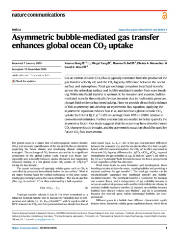 Dong, Y, Yang, M, Bell, TG, Marandino, CA and Woolf, DK 2025 Asymmetric bubble-mediated gas transfer enhances global ocean CO2 uptake. Nature Communications, 16 (1). 10.1038/s41467-025-66652-5
