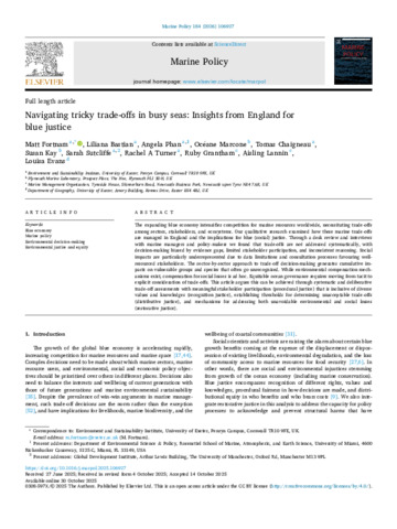Fortnam, M, Bastian, L, Phan, A, Marcone, O, Chaigneau, T, Kay, S, Sutcliffe, S, Turner, RA, Grantham, R, Lannin, A and Evans, L 2025 Navigating tricky trade-offs in busy seas: Insights from England for blue justice. Marine Policy, 184. 106927. 10.1016/j.marpol.2025.106927