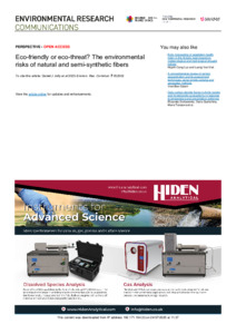 Jolly, DJ, Allen, E, Olah-Kovacs, B, McIlwraith, HK, Warren, RJ, Woodhouse, C, Staines, M, Wright, ACM, Boots, B, Tolhurst, TJ and Green, DS 2025 Eco-friendly or eco-threat? The environmental risks of natural and semi-synthetic fibers. Environmental Research Communications, 7 (5). 052502. 10.1088/2515-7620/add860