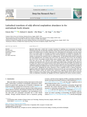 Han, G, Quartly, GD, Wang, H, Yang, J and Chen, G 2025 Latitudinal transitions of eddy-affected zooplankton abundance in the mid-latitude North Atlantic. Deep Sea Research Part I: Oceanographic Research Papers, 226. 104605. 10.1016/j.dsr.2025.104605