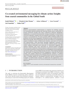 Asian J of Social Psycho - 2025 - Richter - Co‐created environmental messaging for climate action Insights from coastal.pdf Available under License Creative Commons Attribution. Download (1MB) | Preview |