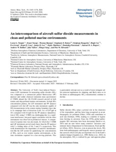 Temple, LG, Young, S, Bannan, TJ, Batten, SE, Bauguitte, S, Coe, H, Grant, E, Lacy, SE, Lee, JD, Matthews, E, Pasternak, D, Rogers, SDA, Rollins, AW, Vallow, J, Yang, M, Edwards, PM and 2026 An intercomparison of aircraft sulfur dioxide measurements in clean and polluted marine environments. Atmospheric Measurement Techniques, 19 (4). 1165-1178. 10.5194/amt-19-1165-2026